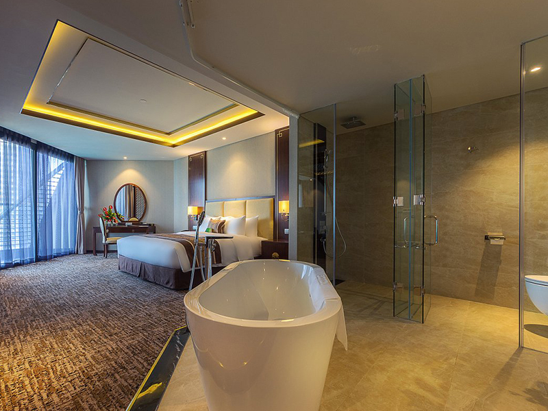 Tại các phòng Master, Bravat cũng bày trí cho căn biệt thự của anh những thiết bị hiện đại, hài hòa với thiết kế, và tiêu chí, công năng sử dụng hợp lý. Tất cả đem đến một không gian phòng tắm sang trọng, đẳng cấp. Với diện tích phòng rộng, Bravat lên phương án sử dụng các thiết bị thông minh và bồn tắm nổi để tạo ra sự đẳng cấp và khác biệt với những căn phòng tắm khác trong biệt thự.