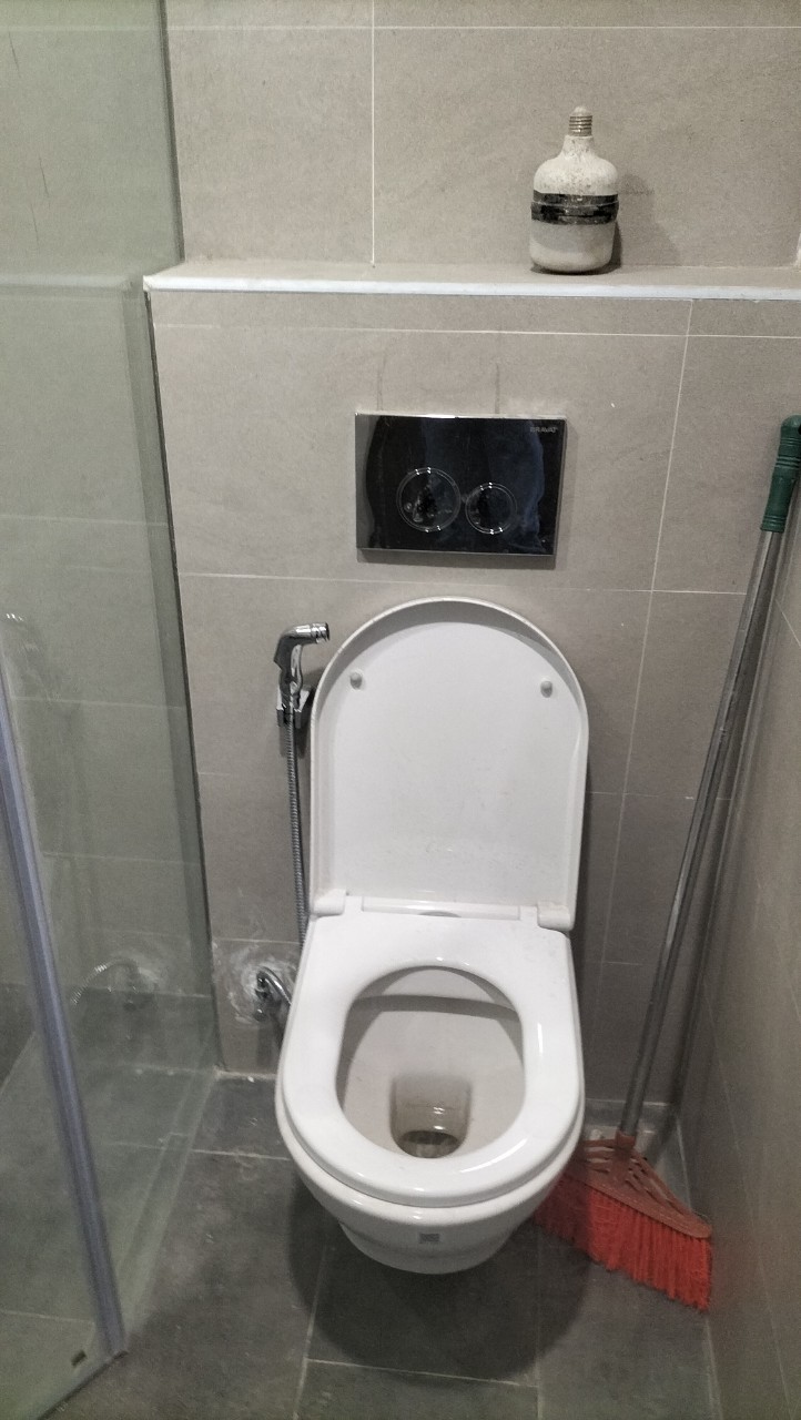 Bồn cầu két nước âm tường là thiết bị vệ sinh được anh Quân lựa chọn với thiết kế theo phong cách hiện đại, mới mẻ với hệ thống treo tường độc đáo. Khách hàng sẽ được trải nghiệm những cảm giác thú vị, tuyệt vời bởi phần két nước nằm sâu bên trong góc tường, chỉ lộ ra phần thân cầu cùng nút xả. Vừa hiện đại vừa tiết kiệm diện tích không gian một cách đáng kể.