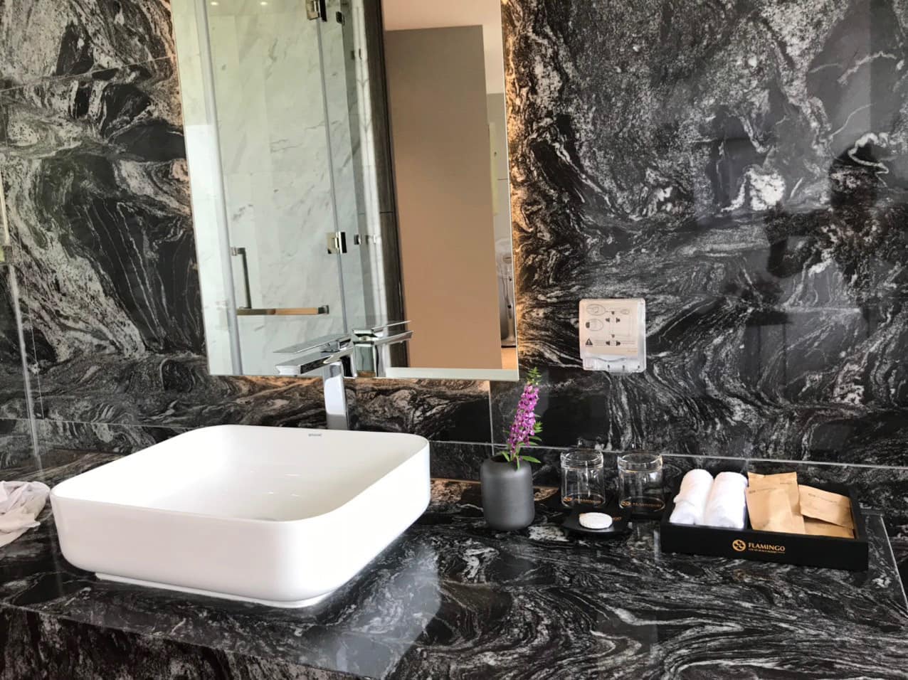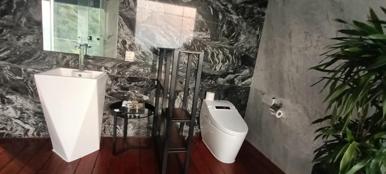 Không gian phòng tắm được trang bị hiện đại bởi Bravat tại Penhouse Flamingo Cát Bà