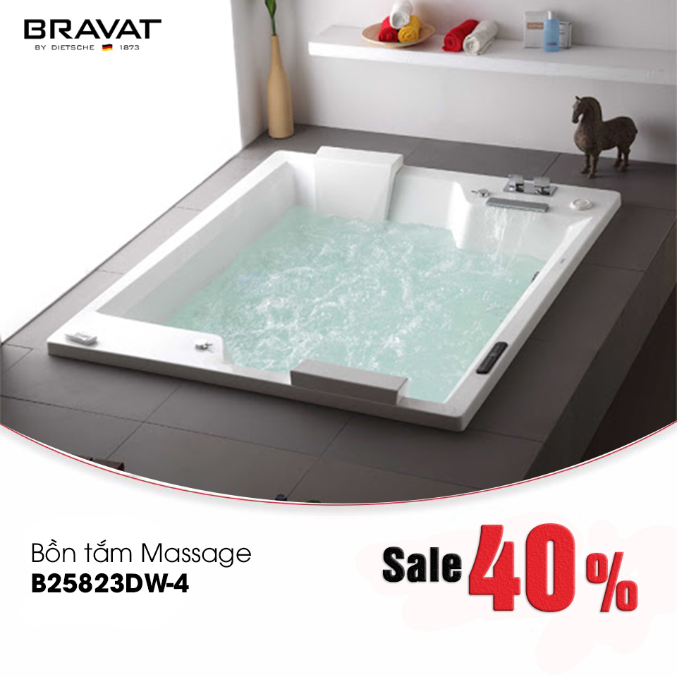 Bồn tắm massage B25823DW – 4 huyền thoại dành cho hạng thương gia trong khách sạn 5 sao giờ chỉ còn 60 triệu đồng. Mẫu bồn tắm trong mơ, với thiết kế hiện đại, tính năng massage tiên tiến theo công nghệ chuẩn Đức nay có thể nằm trong căn phòng tắm của gia đình bạn. Để tất cả các thành viên có thời gian gắn bó và hạnh phúc bên nhau.