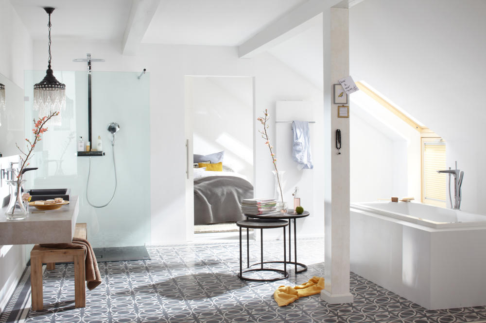 Các chi tiết phức tạp trên sàn gạch nên được cân bằng với một khoảng tường màu trơn và ngược lại. Điều quan trọng nhất trong trang trí nội thất phòng tắm là giữ phần còn lại của không gian thật tối giản. Vì vậy, căn phòng sẽ không bị choáng ngợp và tù túng với đủ loại hoa văn và màu sắc.