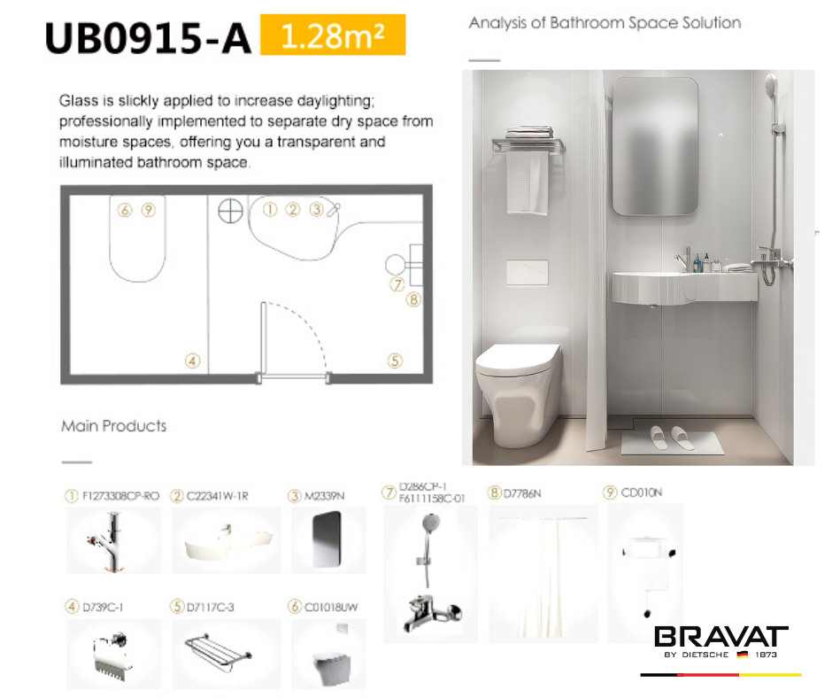 Chúng ta không khó gặp được những phòng tắm với diện tích siêu nhỏ. Và để bố trí thiết bị vệ sinh trong phòng tắm diện tích nhỏ như vậy lại là vấn đề nan giải hơn. Đừng lo, Bravat Miền Bắc sẽ gợi ý cho các bạn cách bố trí vô cùng hợp lý và vẫn sang trọng cho phòng tắm chỉ 1.28m vuông.