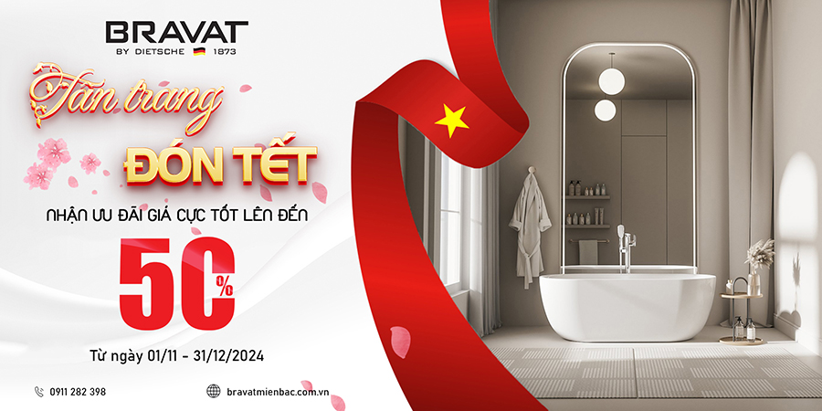 Tân trang phòng tắm dịp cuối năm không còn là vấn đề nan giải với chương trình khuyến mại chưa từng có. Từ nay đến hết ngày 31/12/2024, BRAVAT MIỀN BẮC gửi đến Quý khách hàng chương trình mua sắm thiết bị phòng tắm tắm giảm giá lên đến 50%.